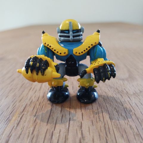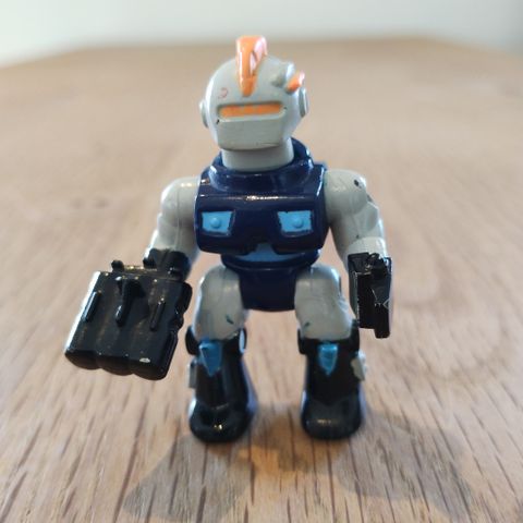 Galoob Inc . grønne beskyttelsesbriller og orange høreværn. Figuren har detaljer som en byggeplads med kran og forskellige bygningsdele i brune, orange og blå farver. Materialet er plast.