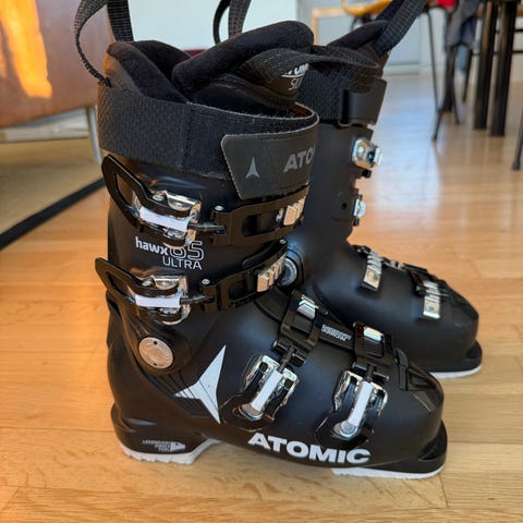 Atomic Hawx Ultra 110 skistøvler i størrelse 25-25,5. De har været rigtig gode for mig. De er stadig 100% funktionelle. Jeg brugte dem senest i sidste år. Jeg sælger dem for at gå op til en stivere model.