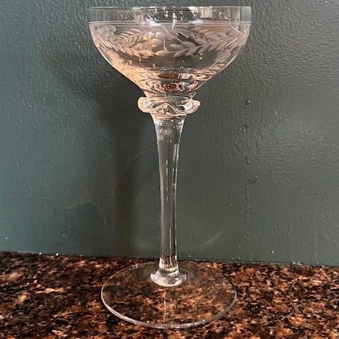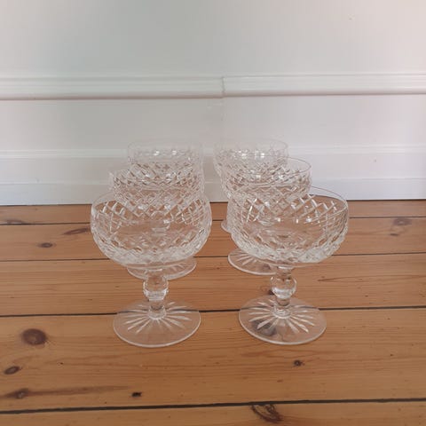 Smukke vintagechampagneskåle i krystal. Flere forskellige, 50,- pr stk. Afhentning i Værløse eller på Vesterbro