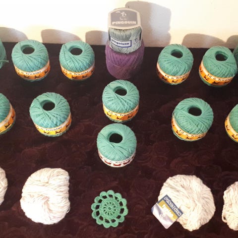 Merciseret bomuldsgarn 3 helt nye 100 g pr rulle og 3 rester.