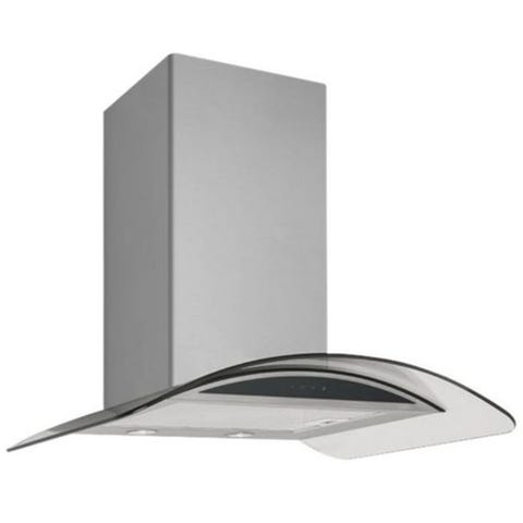 Okap emhætte i sort glas. Emhætten har et moderne design med vinklet front. Velegnet til montering i køkken til effektiv ventilation.