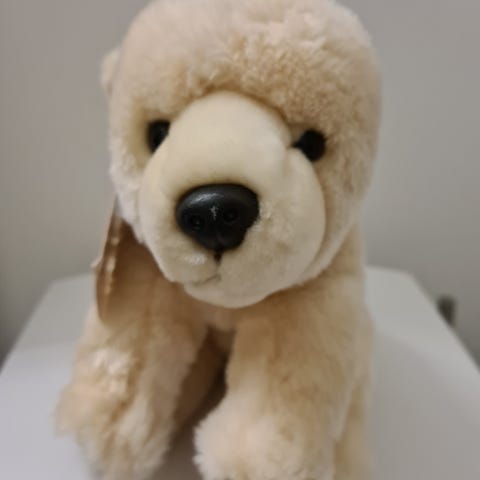 Denne hjemme hæklede bamse er lavet af acryl og uld og vat som fyld og er helt ny Den er 30 cm lang