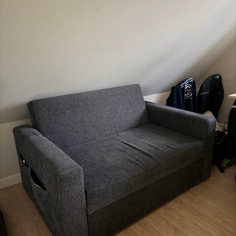 Vendbar sofa - pudderne kan ses de er brugt, men ellers fejler den ikke noget
