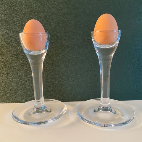 4 stk Holmegaard “ Morgenbord” høje æggebægere h 16 i klart glas. Flotte på et brunch-bord