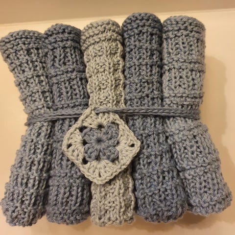 Hjemmestrikket karklude vaskeklude mundserviet eller små gæstehåndklæder. Strikket i kvalitets øko tex bomuld. De måler Ca 26 X 28 Cm Prisen er Pr. Stk. De kan sendes på købers regning. Se gerne mine andre annoncer.