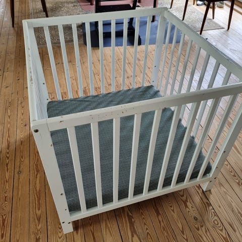 Rund kravlegård fra Buxibo, hvor bunden kan indstilles i tre forskellige højder.