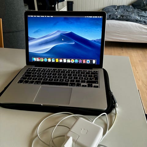 Apple MacBook Pro 13-tommer 2019 laptop med 2,4 GHz Quad-Core Intel Core i5 processor, Intel Iris Plus Graphics, 8 GB 2133 MHz LPDDR3 hukommelse og Thunderbolt 3 porte.