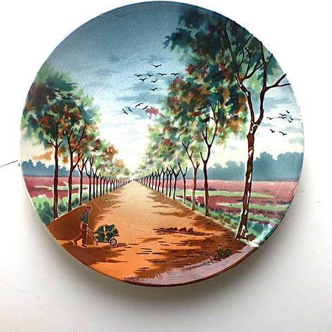 Viktoriansk bemalet fad, asiatisk motiv