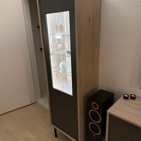 Super lækker vitrineskab udført imassivt træ med mørk behandling.