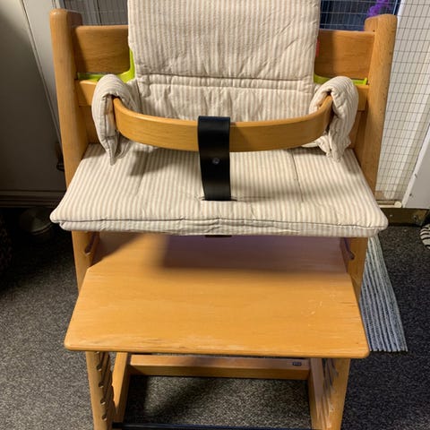 Trip Trap stol med strop Bøjle & Rygstykke samt Hyndesæt som er vasket.🧽