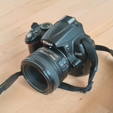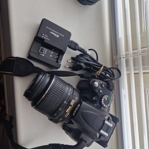 Der medfølger: Batterioplader Quick Charger MH-23, blitz speedlight SB-700, linse Nikkor 55-200 mm, brugervejledning til kamera og til blitz, taske.