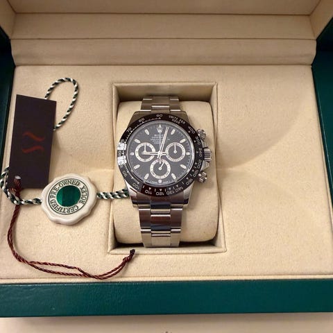 En af de mest eftertragtede moderne Rolex-modeller, kendt for sin elegante balance mellem motorsportens funktionalitet og luksuriøst design.