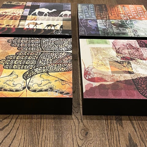 4 Orientalske vægpaneler med fugle og naturmotiver