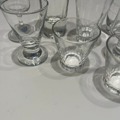 Jeg sælger 7 af disse små "snapseglas" med fine detaljer.