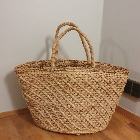 Vintage flettaske.H 30/45 cm, B 42 cm.Flot og velholdt, gå til varen, for flere billeder.(K).
