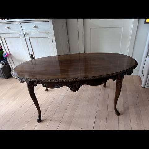 Fint stand men med mærker på bordet der formentlig kan slibes væk og så på med lidt olie så tror jeg det står helt flot igen