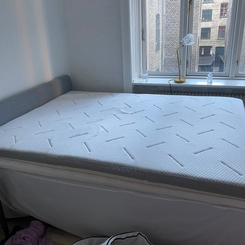 4.5 cm tyk topmadras 160x200 cm med kerne af trykaflastende AIR memory foam. AIR memory foam former sig hurtigt og præcist efter kroppen, selv i et køligt sovemiljø. Vaskbart betræk. brugt få gange.
