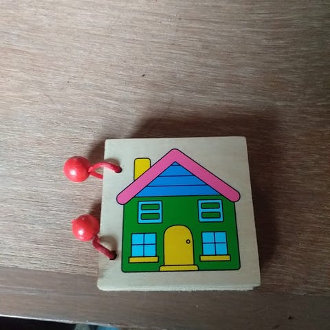 Træ bog med 4 sider den måler 8 cm på hver led og 3 cm i tykkelsen