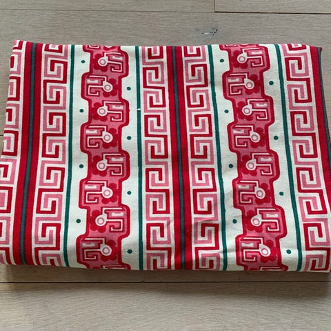 Blåt stofmateriale med tilhørende sytråd i samme farve. Stoffet har en glat overflade og kan anvendes til forskellige syprojekter.
