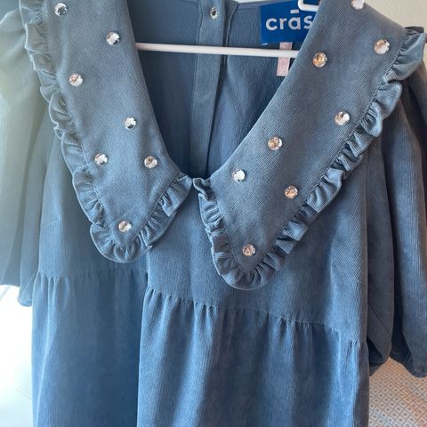 Smuk kjole fra Crās. Den er i en løs pasform, med korte puf ærmer og bindebånd i nakken som en fin detalje.