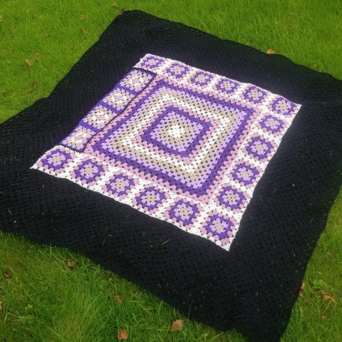 Dette hjemme hæklede tæppe er lavet af acryl og uld og er helt nyt Det er 50x60 cm