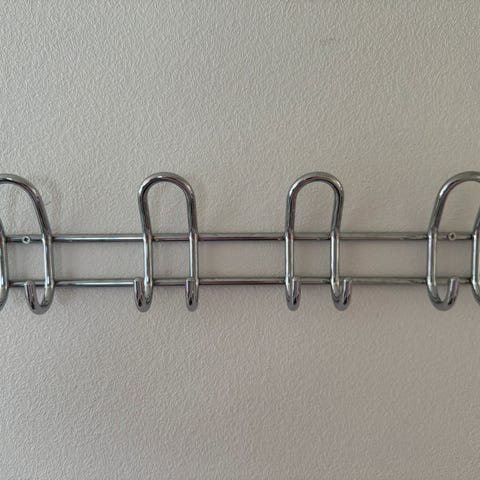 Flot krom knagerække med 12 multifarvede knopper. Passer perfekt ind i børneværelset, gangen eller bryggerset til ophæng af overtøjet. Der medfølger skruer og rawplugs til ophæng.