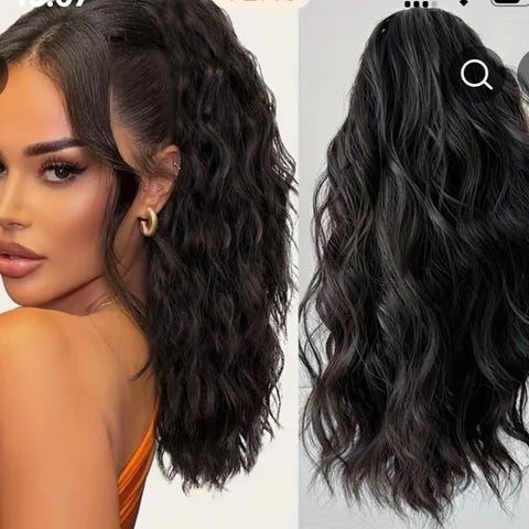 Unisex hestehale hårclips i sort og blond farve. Kan bruges til at sætte håret op i en hestehale. Materiale og størrelse ikke oplyst.