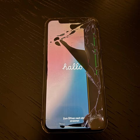 Apple iPhone 10 med 64 GB lagerplads. Skærmen på forsiden fejler ingenting. Bagsiden har revner i glasset - men det kan dækkes af et cover.