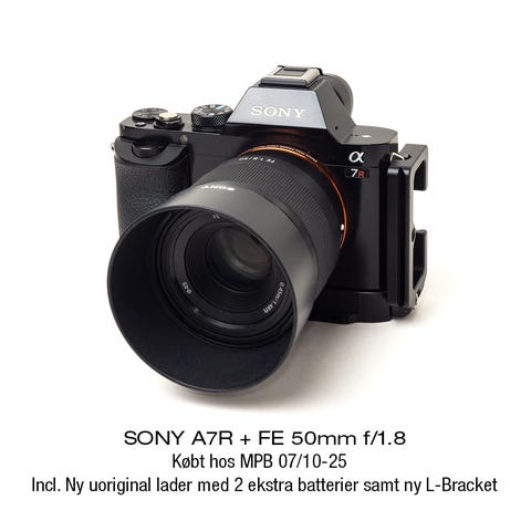 Hej :) Jeg sælger et næsten nyt Sony A7 kamera (første model). Kameraet har en 24MP full-frame sensor. Det har taget omkring 870 billeder indtil videre og ser ud og fungerer som nyt. Sættet indeholder et 28-70mm objektiv, en stor vandtæt taske, et 32GB SD-kort, en halsrem og en håndledsrem. Med venlig hilsen :)