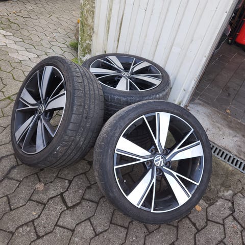 Næsten helt nye dæk. To dæk er fra 2025 og de to andre fra 2023.