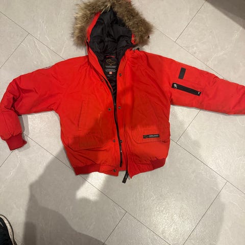 Bukserne har været brugt ganske få gange på tur med hundeslæde, men der er lidt brugsspor - se fotos. Det er ikke forsøgt fjernet, da bukserne SKAL rengøres på renseri!