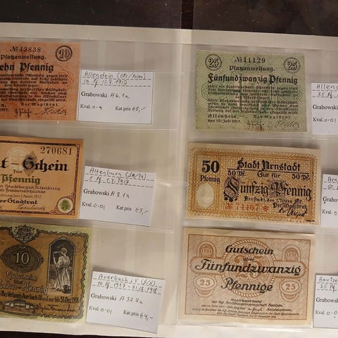 Nødpengesedler fra Tyskland. Samling af 11