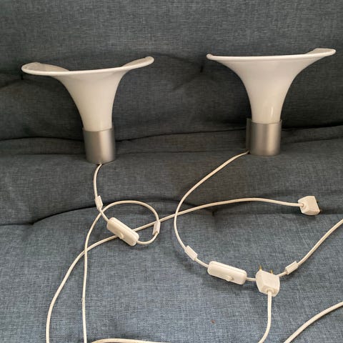 Hvid Mandarin væglampe - Holmegård 25 cm bred - kan morteres op mod loft eller ned mod gulvet.