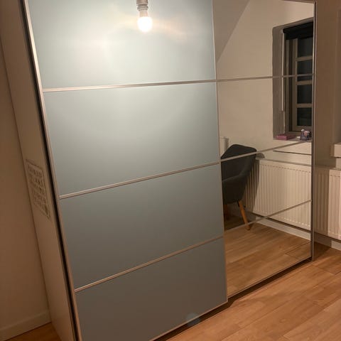 Jeg sælger dette garderobeskab fra IKEA, da jeg har byttet rundt på mine værelser og derfor ikke har plads til det. Skabet er købt i december 2025, så det er knap 1,5 måned gammel. Skabet fejler ingenting og har ingen tegn på slid.