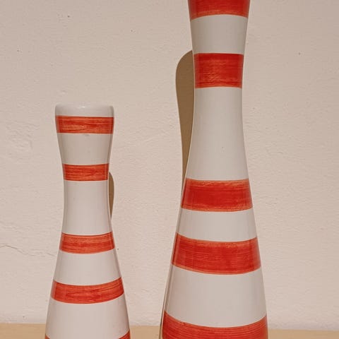 Kähler Omaggio lysestager med karakteristisk sort og hvid stribet mønster. Som nye har kun været brugt til pynt 24 cm og 20 cm de sælges samlet