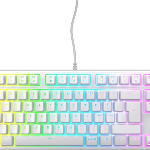 Xtrfy K5 Compact tastatur med kompakt design. Tastaturet er hvidt og har et minimalistisk layout, der egner sig til brug i forskellige computeropsætninger.