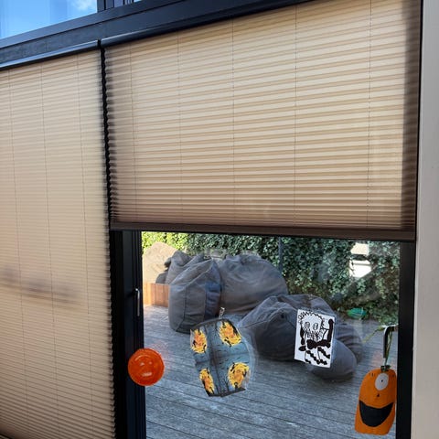 Kirsch plisségardin i grå farve. Gardinet er designet til at give fleksibel lyskontrol og privatliv. Passer til mindre vinduesåbninger og kan justeres efter behov.