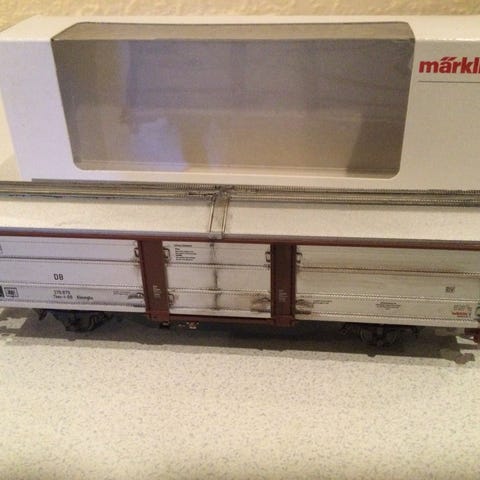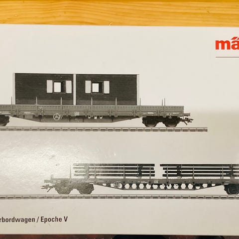 Alt er i originalt emballage, men dog er æskerne lidt ødelagt, som man kan se på billederne. Vognene fejler ikke noget. Der er kortkoblinger på (påsat fra start)