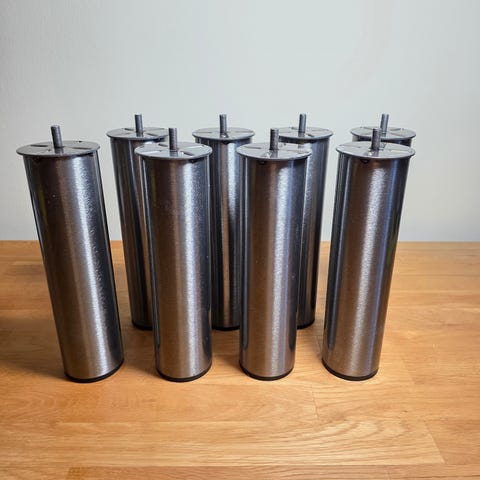 Robust sæt med 4 ben i børstet stål med 8 mm gevind. Højde 23 cm .