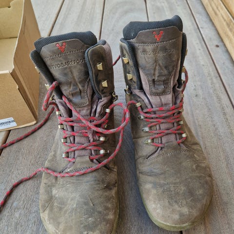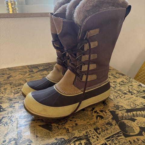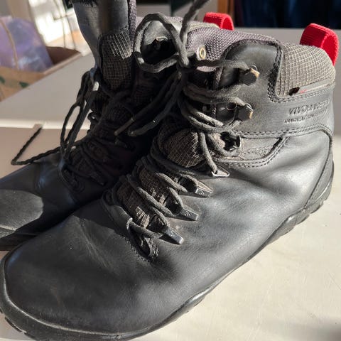 Str. 41, mand. Støvlerne har slidstegn rundt omkring og er tydeligt brugt. Men de er vedligeholdt med jævnlig læderfedt, og er egentlig stadig i god stand. Det eneste reelle problem er et hul på bagsiden af hælkanten på den ene støvle. Se billeder. Min mand siger, at det ikke kan mærkes når man har dem på, men det skal sikkert fikses.