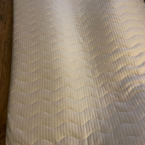 Jysk Dreamzone madras med hvid overflade og sort kant. Madras med medium fasthed, velegnet til standard enkeltseng eller dobbeltseng. Materiale og størrelse ikke specificeret.