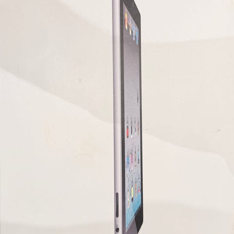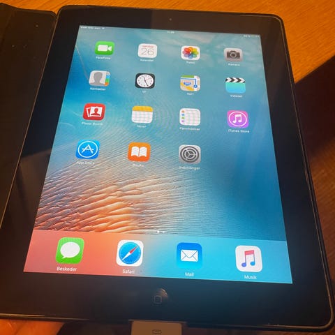 Apple iPad tablet med 128 GB lagerplads. Enhedens farve er silver. Den er købt i 2019. Funger helt fint trods en flænge nede i hjørnet.