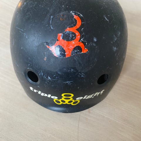 Triple Eight Certifier hjelm i sort farve. Hjelmen har flere ventilationshuller og er designet til at beskytte hovedet ved aktiviteter som skateboarding, cykling og andre sportsgrene. Størrelse 54-58 cm, CE-certificeret for sikkerhed.