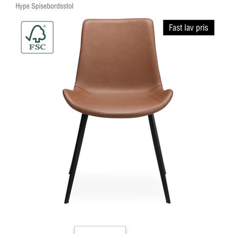 Hype Spisebordsstol 4 i cognac farve med sæde og ryg i polstret materiale og 2 i sort , hvilket giver et moderne og robust look. Vi har brugt det ved spise ordet. De fremstår som næsten nye. Sælger pga flytning. Sælges meget billigt. Som i kan se koster 1 stol for 1499 kr .hos Ilva .