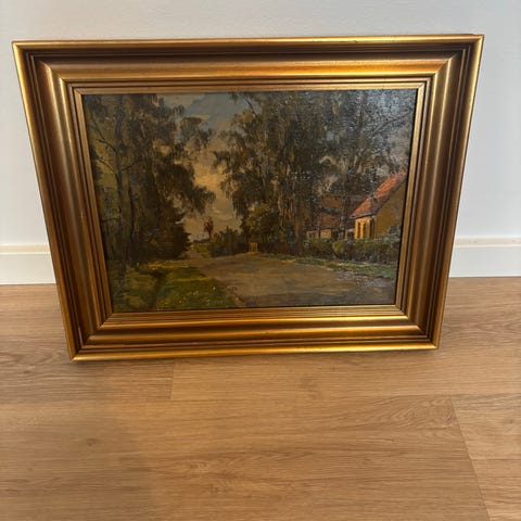 Alibak Johansen Maleri med fugl og landskab