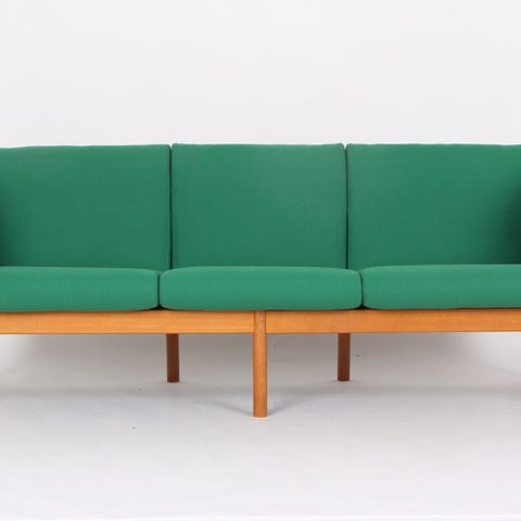 Luna" 3-personers sofa med stel af massiv eg og hynder betrukket med beige uld. Stellet er sæbebehandlet. Standen er god med alm. aldersrelaterede brugsspor.