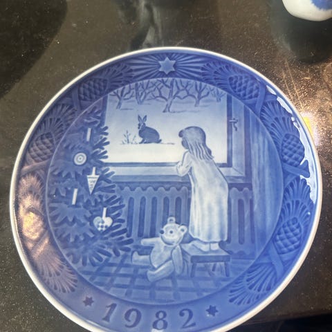 Royal Copenhagen Juleplatte 1982 Pige med bamse