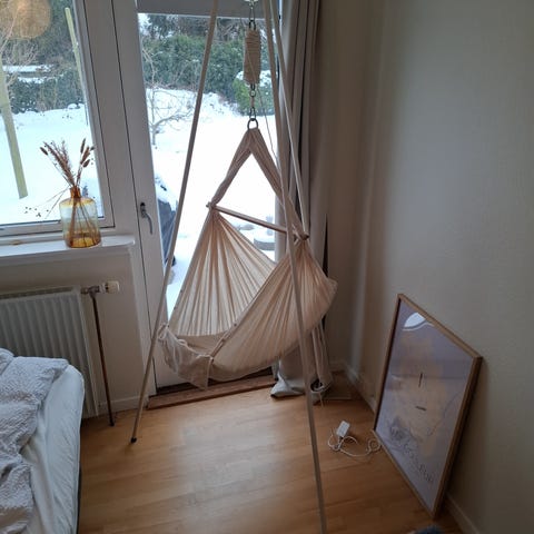 Lækker slyngevugge fra Moonboon. Vi har været glade for den til vores datter 3 mdr, men må nu indse at vi ikke får den brugt mere og den bare står for at stå.