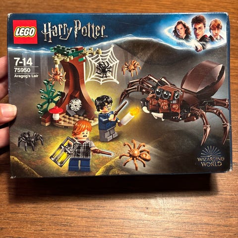 LEGO Harry Potter LEGO sæt 75950 indeholder byggeklodser og figurer fra Harry Potter universet. Sættet inkluderer en stor edderkop, træ med spindelvæv, gravsten og flere tilbehørsdele. Det er egnet til samling og leg med Harry Potter tema.