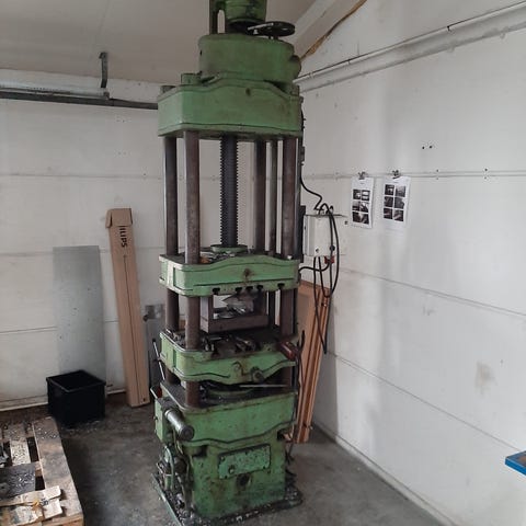 Hydraulisk, elektrisk presse med separat pumpestation, ubrugt, 150 tons, 3 kw.. Slaglængde: 350 mm., egenvægt: 980 kg.